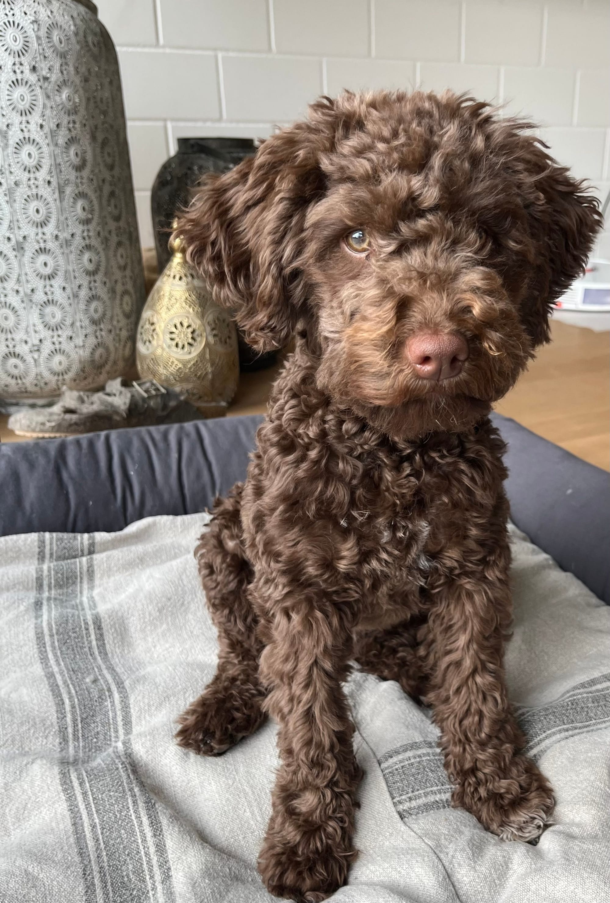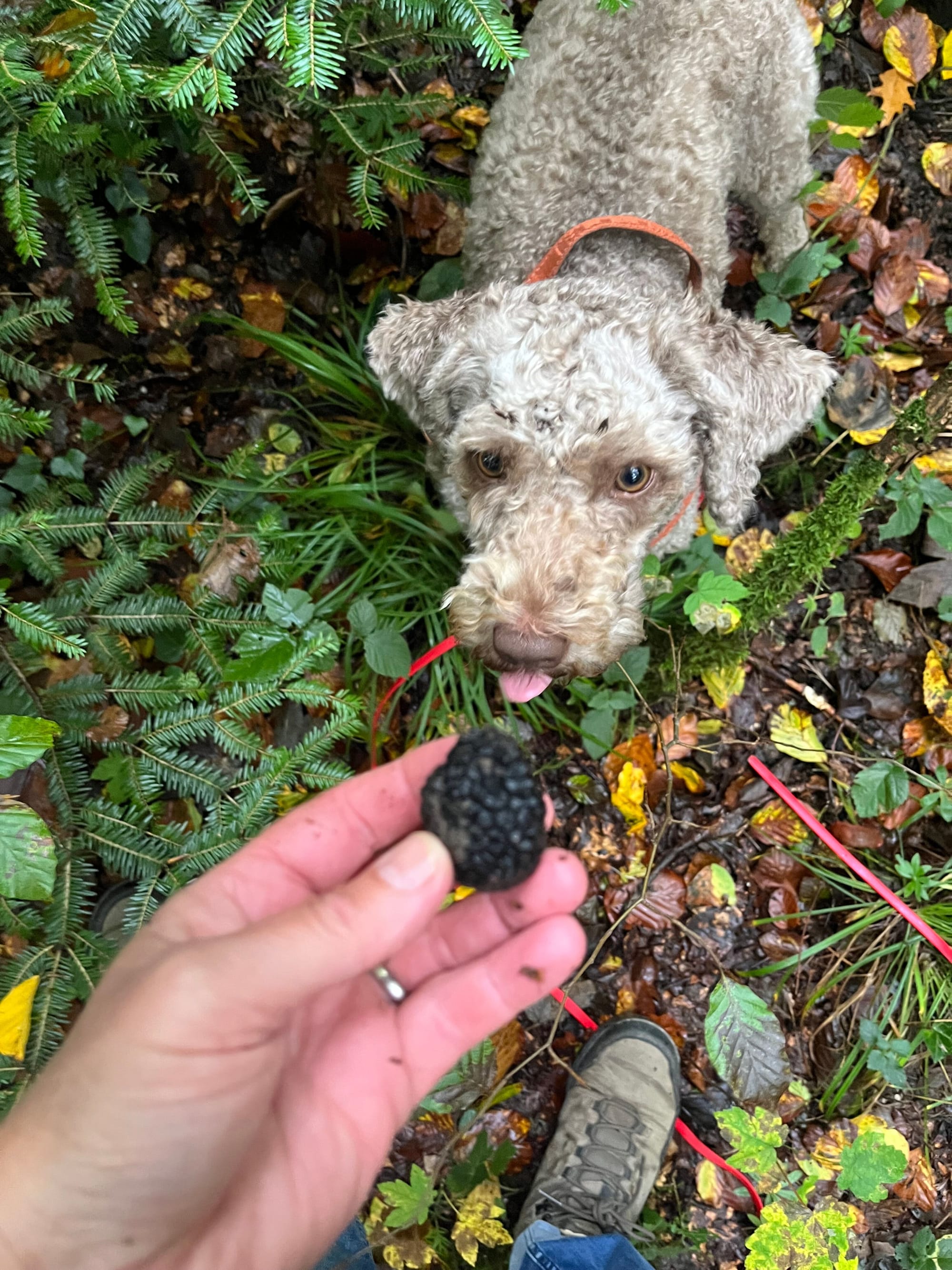 Unsere Hündin Juno stammt aus der Zuchtstätte „lueg is Land“. Mit ihrem ruhigen und ausgeglichenen Wesen bereichert sie unseren Alltag. Besonders gern widmet sie sich ihren liebsten Hobbys: Socken sammeln und der Trüffelsuche.