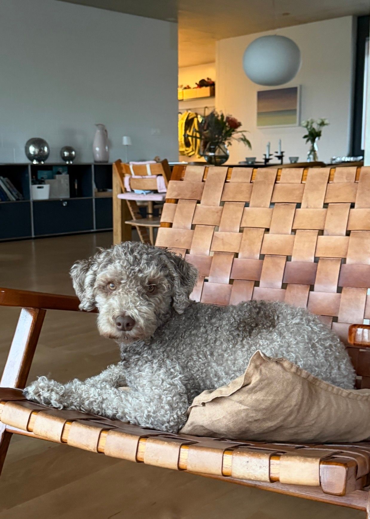 Mehr lesenUnsere Hündin Juno stammt aus der Zuchtstätte „lueg is Land“. Mit ihrem ruhigen und ausgeglichenen Wesen bereichert sie unseren Alltag. Besonders gern widmet sie sich ihren liebsten Hobbys: Socken sammeln und der Trüffelsuche.